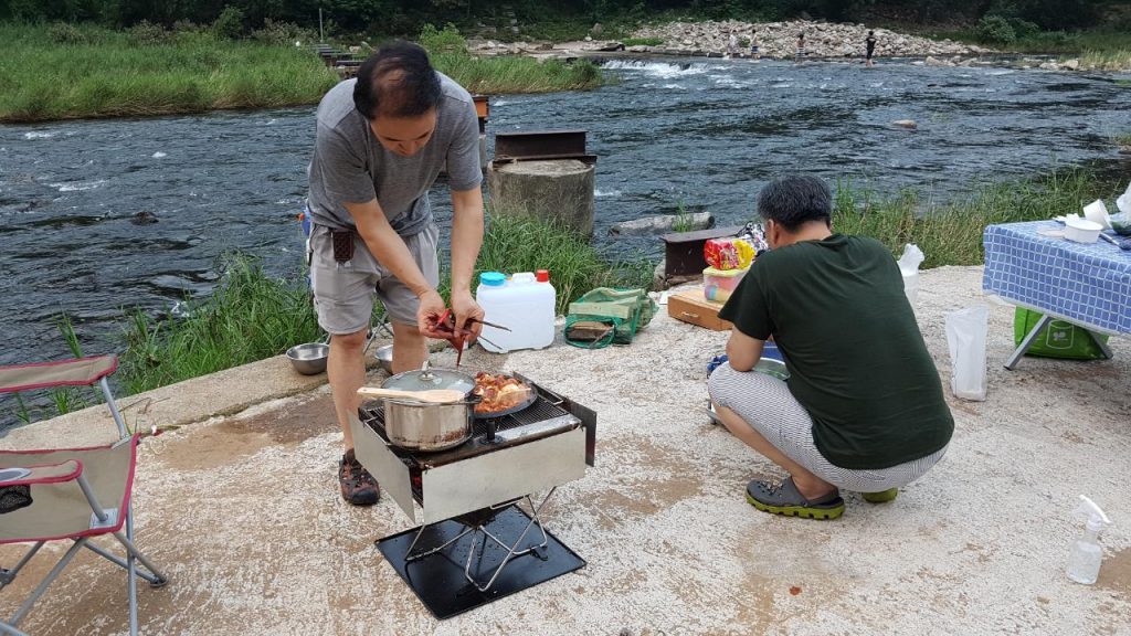 교회중직이라 할 수 있는 장로님과 안수집사님과 특별한 시간을 가졌다. 물이 흐르는 강가에 텐트를 치고 불을 피우고 상을 채렸다. 한집 살림을 통째로 옮겨놓은 것 같다. 우선 간식부터 먹을 것이 너무 많다. 난 쌀을 씻어 밥을 한다. 원래 내 주특기이다. 장로님은 다슬기국에 수제비를 뜯어 넣으신다. 박집사님은 닭갈비요리를 하신다. 식사시간이다. 푸른 국물에 다슬기 수제비, 하루밤 한 텐트안에서 함께 […]
